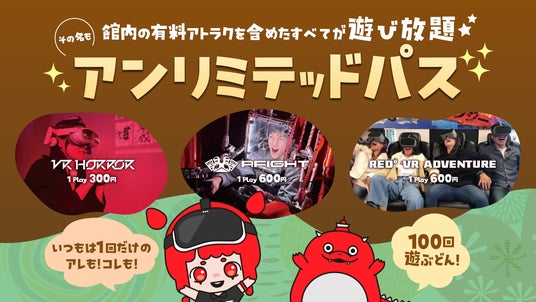 新春福袋でご好評いただいた、有料アトラクション3種のセット券が、“遊び放題”にパワーアップして再登場!