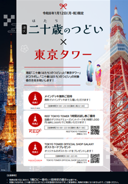 また当日は、東京タワー内の一部施設・店舗においても、「二十歳のつどい」参加者向けの優待を実施予定です。