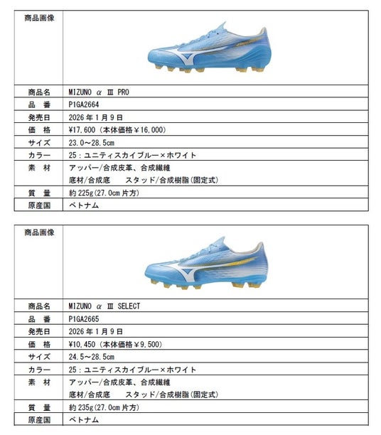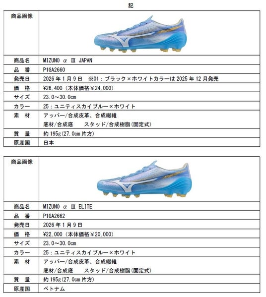 ※1 「MIZUNO α III JAPAN」の一部カラーは2025年12月に先行限定発売
