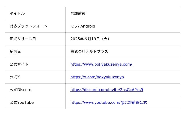 以上のほか、本作の概要につきましては、オルトプラスが8月19日に配信した以下のプレスリリースにてご確認ください。