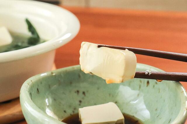煮崩れにくいので、ゴロっと大きな豆腐のままなめらかな食感を楽しめるんです。