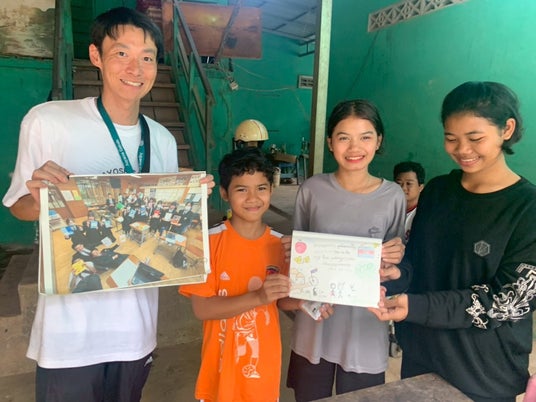 特定非営利活動法人なかよし学園プロジェクト(代表:中村雄一/千葉県松戸市)は、山形県遊佐町立遊佐中学校の生徒が主体となって集めたノート・文房具等を、カンボジアでの難民支援活動において手渡しで届けました。あわせて、現地からの手紙・写真・短い動画などの反応を学校へ還流し、「教室の学びが世界の誰かの役に立つ」実感を次の探究へつなげる往還型モデル CoRe Loop(Co-create & Return Loop) を、遊佐中学校との連携で推進してまいります。