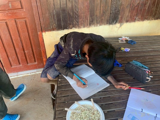 戦禍のカンボジアの学校に届いた遊佐中学校の文房具