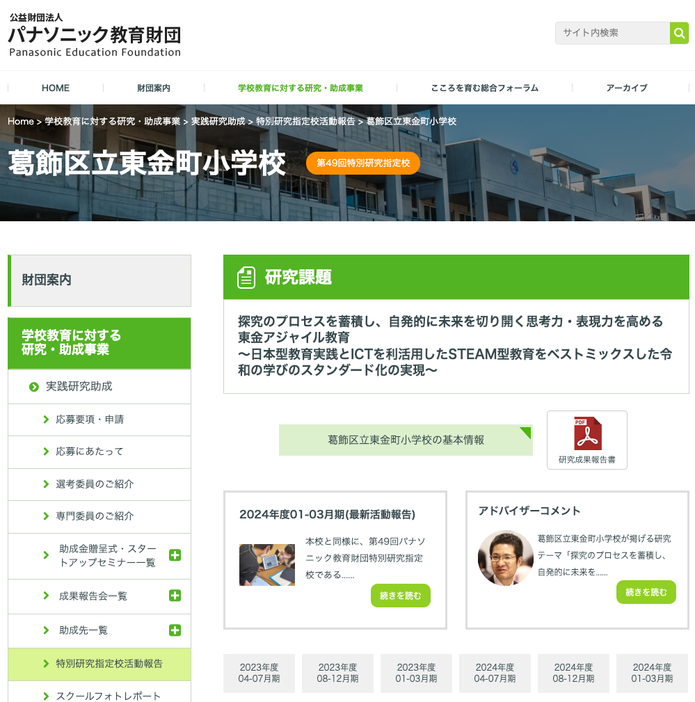 第49回パナソニック教育財団 特別研究指定校
