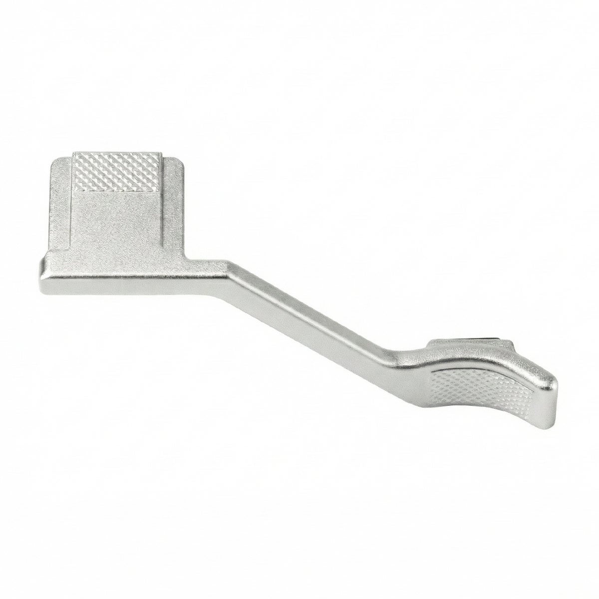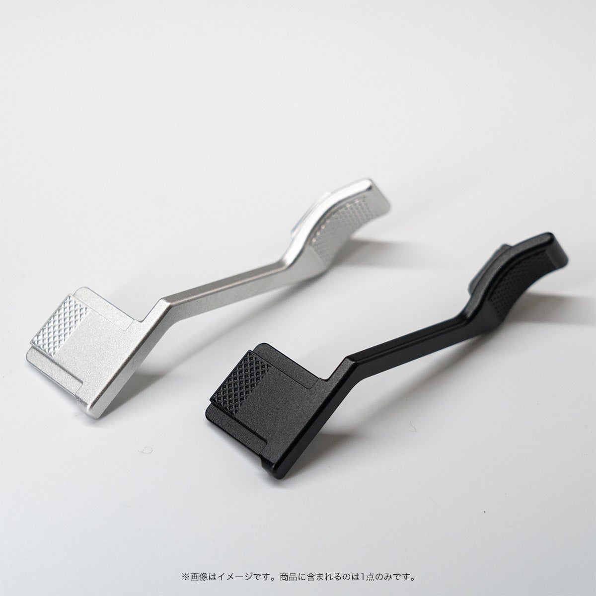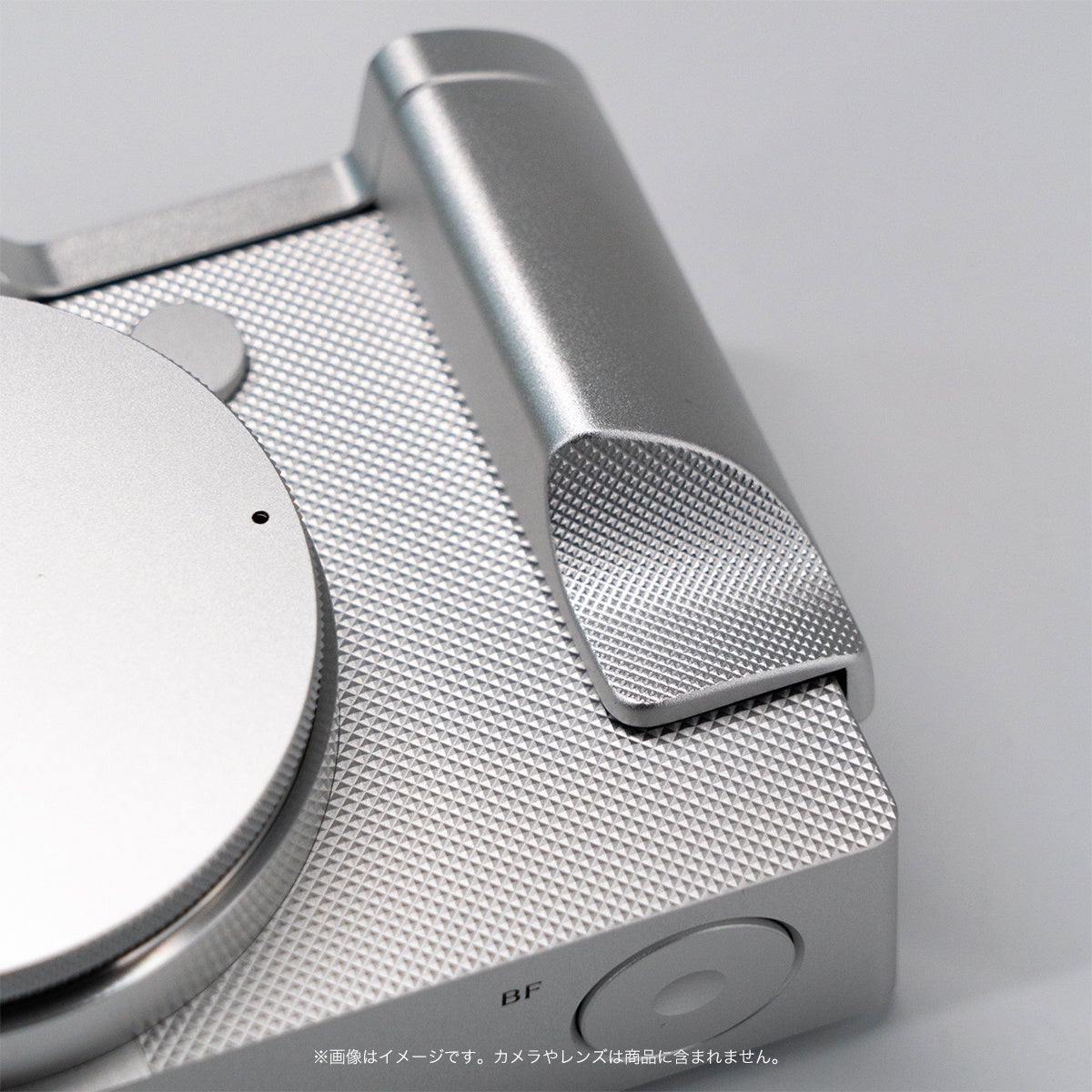 本製品は、カメラ本体のデザインを損なうことなく調和する、シンプルかつ上品な外観を備えたサムレストです。主張を抑えたデザインにより「道具としての美しさ」を際立たせ、カメラとの一体感を高めます。親指が触れる部分には、滑り止め効果を高めるCNCによる特殊加工のテクスチャーを施したグリップを採用することで、安定したホールド感と優れた操作性を実現し、撮影時のブレを効果的に抑えます。また、素材や仕上げの質感にもこだわり、心地よい使用感と高い耐久性を両立。機能性と美しさを兼ね備えた、カメラ愛好家におすすめのアクセサリーです。