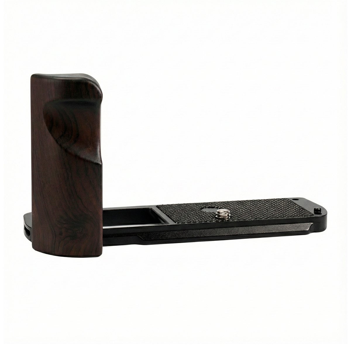 本製品シリーズのカメラグリップは、対応するカメラボディ専用に設計されたモデルです。カメラ形状に合わせた専用設計により、装着時のフィット感に優れ、カメラ本来の操作性やデザインを損なうことなく、安心してご使用いただけます。装着したままバッテリーおよびメモリーカードの交換が可能で、撮影中の取り回しもスムーズです。底面にはアルカスイス互換規格を採用しており、対応する雲台へ素早く装着でき、快適な撮影環境を実現します。さらに、プレート部にはストラップホールを備え、縦位置・横位置のいずれの撮影スタイルにも柔軟に対応します。グリップ部には天然木を使用し、手に馴染みやすく、長時間の撮影でも快適なホールド感を提供。ホールド性を高めることで手ブレを抑え、安定した撮影をサポートします。使い込むほどに質感や光沢が深まり、天然素材ならではの経年変化をお楽しみいただけます。