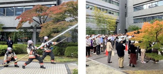毎年10月には、入居企業の職場の安心安全向上の一助として、下京消防署による約70人規模の「救急救命講習会」を実施し、11月には、KRP地区全体の防火・防災意識向上を目的に、地震を想定した「KRP地区総合防火・防災訓練」を行っています。2024年度においては下京消防署の協力のもと、KRP地区に入居する企業・公的機関から約350名が参加。訓練を通し、地区全体の安全な環境づくりおよび災害対応力向上を促進しています。