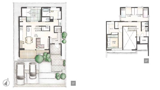 間取り 左:1階、右:2階