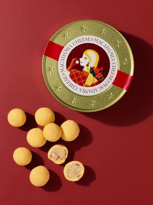 コクのあるチェダーチーズチョコレートでカリッと食感のキャンディングマカダミアナッツを包み込み、仕上げにメープルシュガーをトッピングしました。