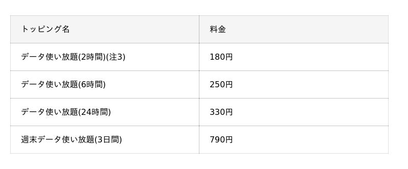(注2)対象トッピングごとに1回線あたり1回限りの適用です。