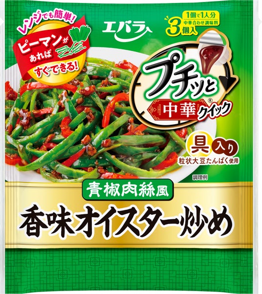 2025年8月より発売した「プチッと中華クイック」は、「プチッと中華」シリーズのサブブランドです。「濃厚味噌炒め」「香味オイスター炒め」の2品を展開しています。大豆由来のそぼろが入った具入りタイプなので、「濃厚味噌炒め」はキャベツと、「香味オイスター炒め」はピーマンと炒め合わせるだけで、満足感のあるおかずをお作りいただけます。