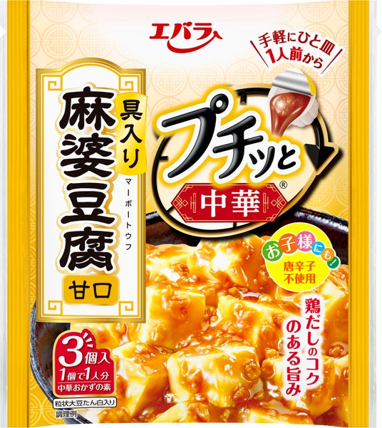 エバラ食品工業株式会社(本社:神奈川県横浜市、代表取締役社長:森村 剛士)は、2026年2月13日(金)より、“1個で1人分の中華調味料”「プチッと中華」シリーズから「プチッと中華 麻婆茄子」「同 麻婆豆腐 甘口」「同 麻婆豆腐 辛口」を新たに発売いたします。新アイテム発売に伴い、「回鍋肉」「青椒肉絲」「麻婆豆腐 中辛」のパッケージをリニューアルし、2026年2月上旬より順次切り替えを実施いたします。