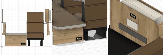 室内には、ベッド展開が可能なシートや効率的に配置された収納を採用し、コンパクトな車体ながら快適な居住空間を実現いたしました。ホワイトバーチのウッドパネルとブラウン基調の内装がログハウスのような空間を演出し、ワンポイントであしらわれたLOGOSロゴがアウトドアブランドならではの遊び心をプラスしております。