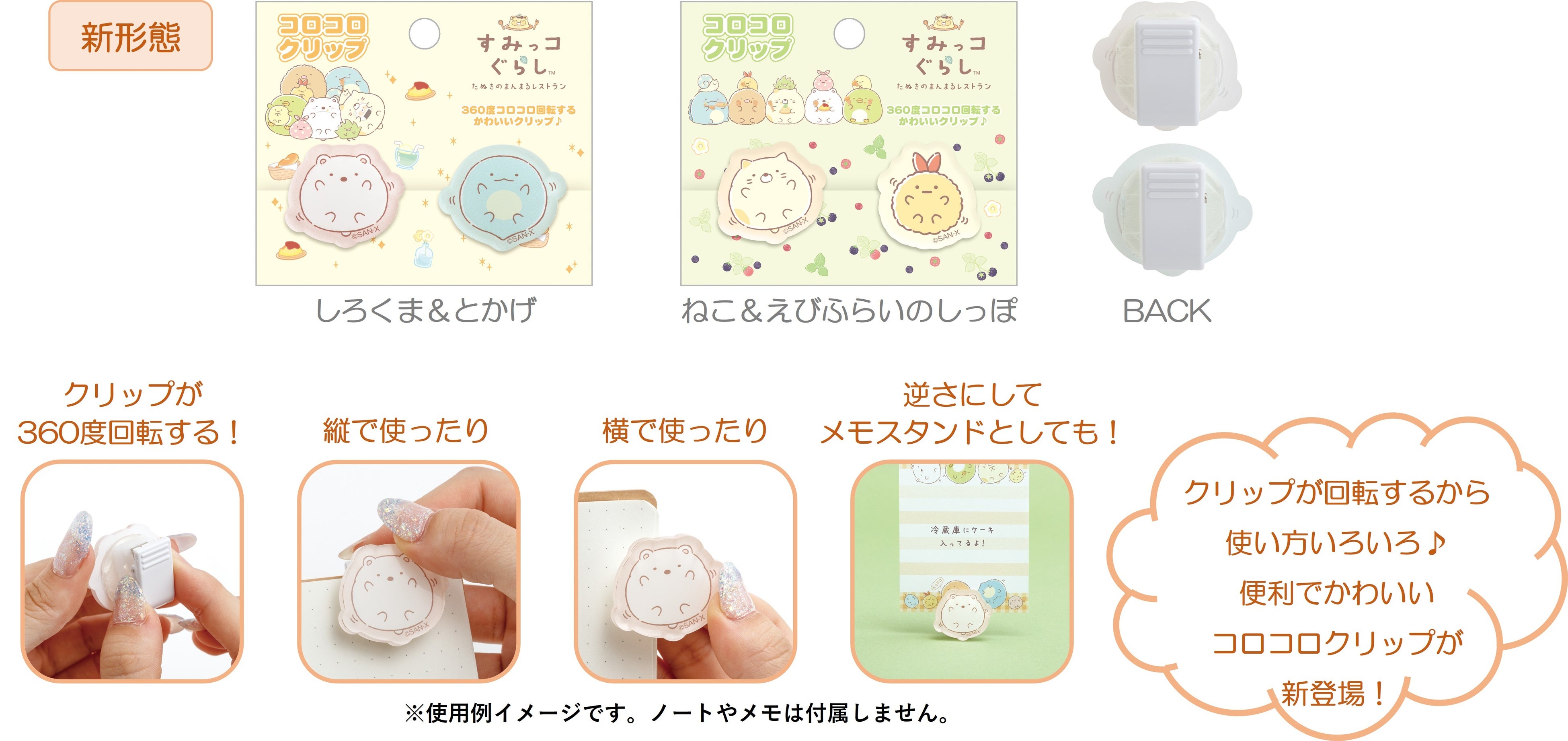 森をおさんぽしていたすみっコたちが見つけたのは、おくびょうな性格のたぬきがきりもりするレストラン。まんぷく姿のすみっコたちがかわいい新シリーズです。そして、新キャラクター「たぬき」が登場。コロコロ回転して便利なクリップや、フラップ付きで書類が落ちにくいクリアホルダーなど新形態アイテムが登場するほか、フェイスデザインのマグカップやプレートなどのキッチン雑貨、すみっコたちのまんまるフォルムの“ぶらさげぬいぐるみ”などのアイテムが登場。コロコロかわいいアイテムが多数ラインナップします。