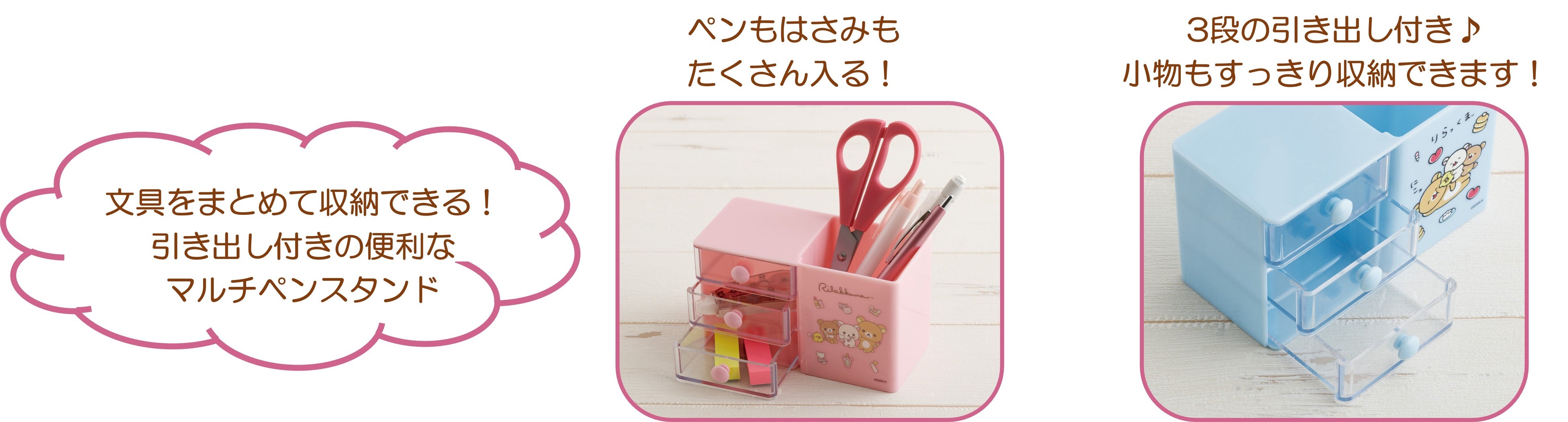 ぺりっとページが切り取れる自由帳や、文具をまとめて収納できる引き出し付きのマルチペンスタンドなど、入学・新学期のスタートを便利に楽しく彩る定番アイテムに加え、フタが透明で中身が見やすいペンポーチや、マットな質感が特徴のふにっとかわいいシールといった新形態アイテムも登場します。