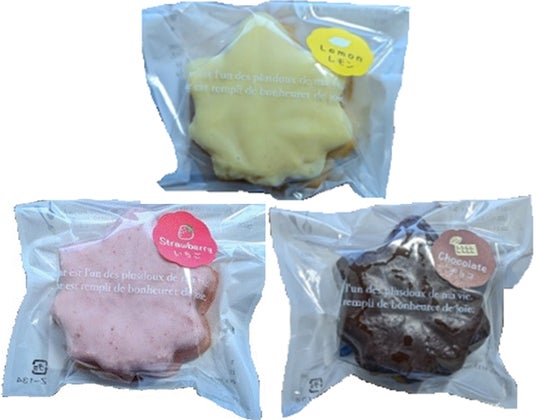 特 長:ドーナツ生地をもみじの形で焼き上げ、チョコレートをコーティングしています。チョコ、いちご、レモンの3種をご用意しました。