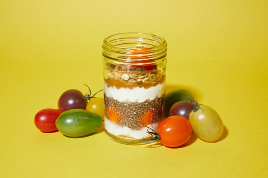 復活希望の声が多かった、あまじょっぱい総菜系パフェ。ココナッツ豆乳ヨーグルトとカシューナッツから作ったヴィーガンチーズに、はじける発酵ミニトマトを合わせました。お酒のおつまみにもおすすめの、大人向けパフェです。