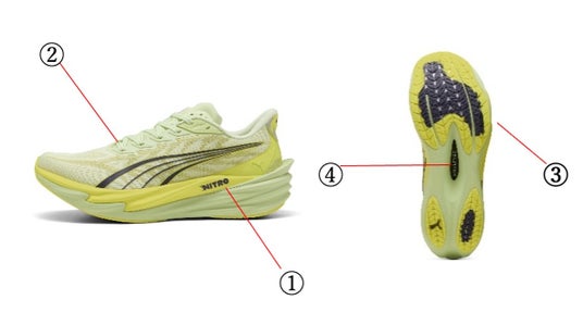再設計されたPWRPLATEは、柔軟性を高めながらも安定性を確保する形状へと進化し、「PUMAGRIP(パワーグリップ)」アウトソールがさまざまな路面状況に対応するトラクションを発揮します。テンポ走や日常のトレーニングにおいて、自然な走行感を保ちながら安定した走りをサポートします。
