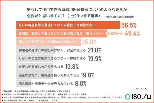 家庭用医療機器を選ぶうえで重視していることは「安全性・信頼性の高さ」が最多!