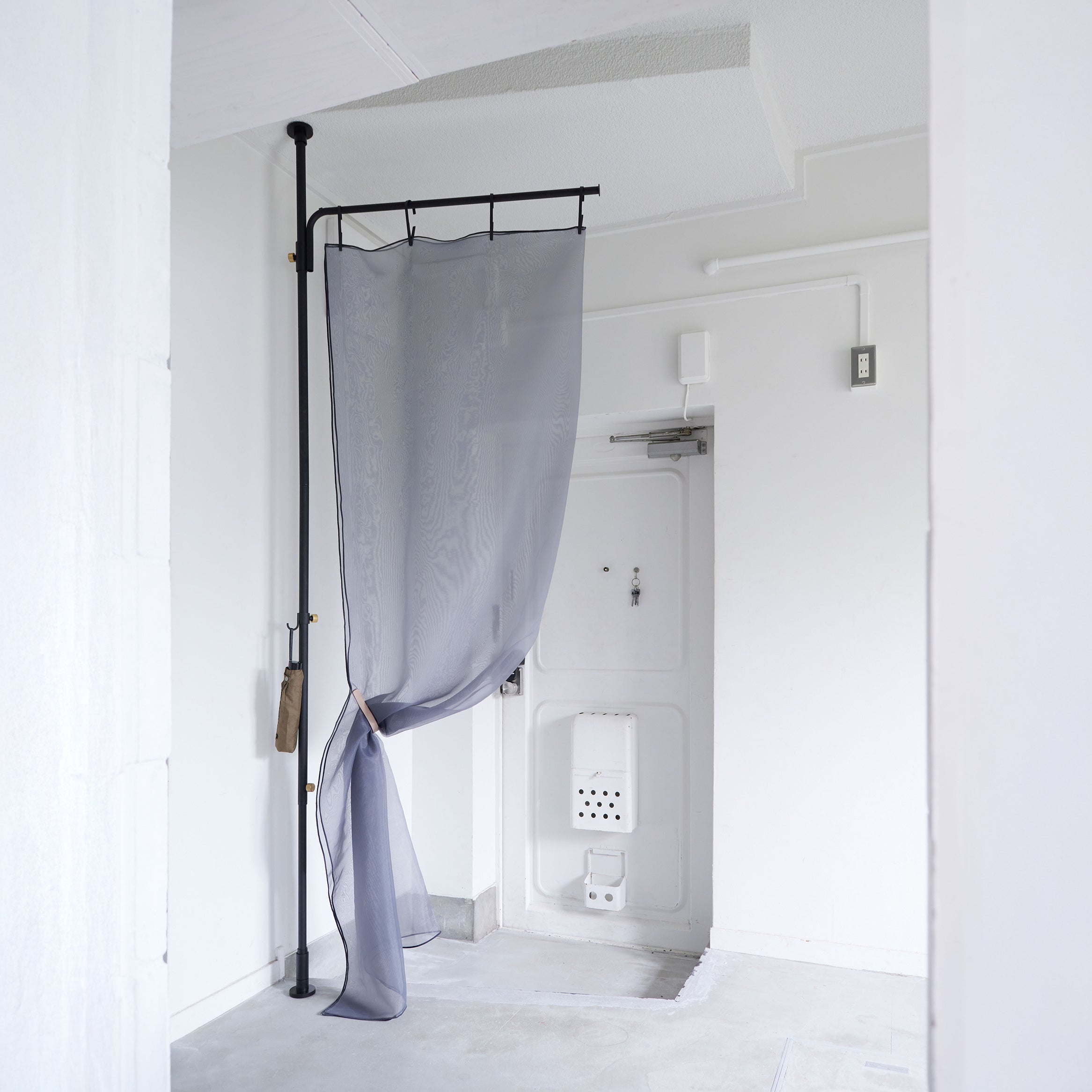 暮らしにフィットするカーテン「One Fit Cloth」は、窓への設置はもちろん、玄関からの目隠し、リモートワーク時の間仕切りやお部屋のアクセントとして、多様なシーンでご使用いただけます。