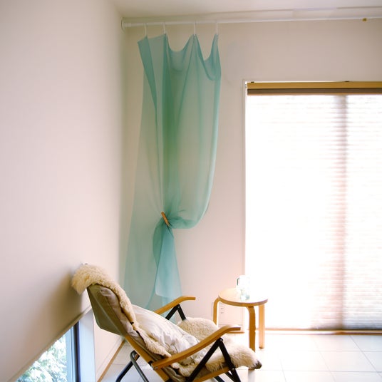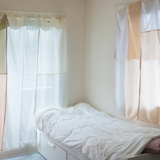 「かさね」は、カーテンにも、間仕切りにもなる フリーサイズのテキスタイル。