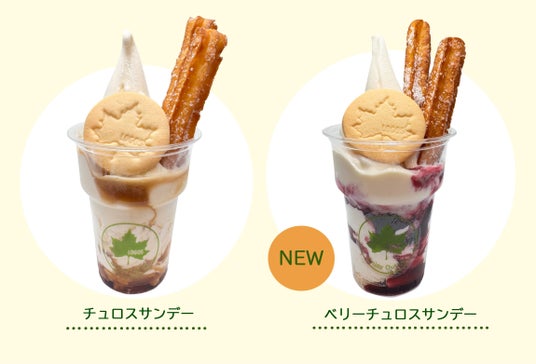 大好評のチュロスを丸ごと楽しめる「チュロスサンデー」の他に、ミックスベリーソースを使用した「ベリーチュロスサンデー」が新登場!