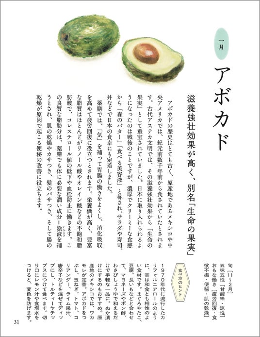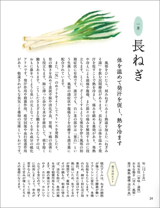 寒さで免疫力が下がる1月、血行が悪くなり「気」の巡りも悪くなって精神的に落ち込みやすくなる2月、梅雨時期の湿気で頭痛がする6月…。そうした月ごとの「気になる不調」と、それをやわらげてくれる食材、およびその食べ方のヒントについて解説。全編イラストでながめるだけでも癒される1冊です。