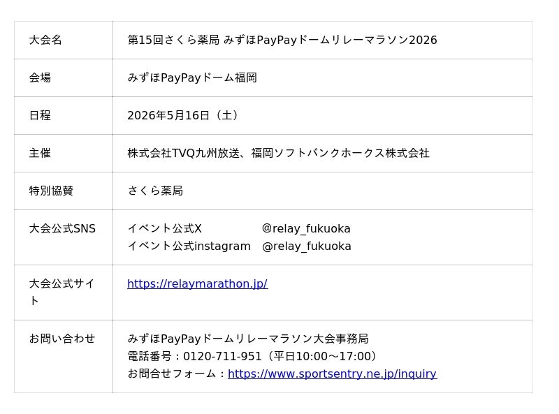 ホークス選手が躍動するみずほPayPayドームをみんなで走ろう!「第15回さくら薬局 みずほPayPayドームリレーマラソン」を5月16日(土)に開催します!