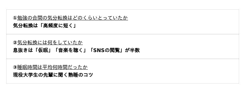■ トピックス3.【睡眠時間は平均何時間だったか】現役大学生の先輩に聞く熟睡のコツ