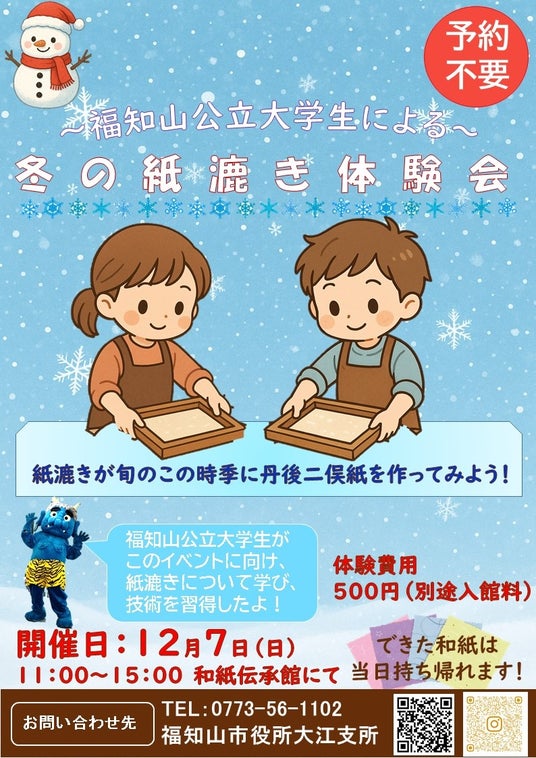 京都府福知山市は、京都府指定無形文化財「丹後二俣紙」の魅力を次世代につなぐため、2025年度から大江地域にある大江町和紙伝承館にて 「大江町和紙伝承館 魅力向上プロジェクト」を始め、体験コンテンツの充実を図っています。