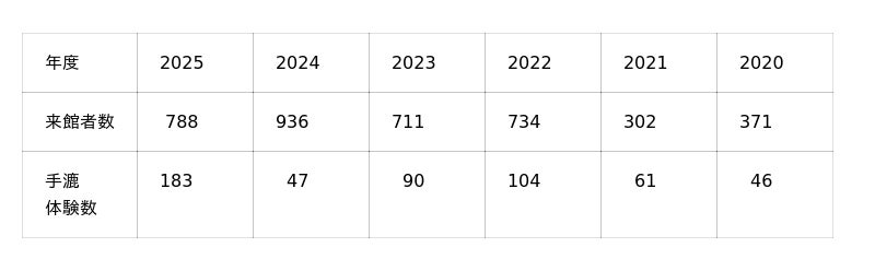 ・入館者数が30周年記念年の2024年度を上回るペースで、1000人を超える見込み。さらに、体験コンテンツを増やしたことから、高校生以下の人数が大幅に増加している。