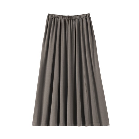 動きを妨げにくい、たっぷりとしたけまわしでありながら、きれいな落ち感により、スッキリと着用いただけるスカートです。今季はトップスと同色のチャコールグレー・黒にボトムスとして使いやすいダークネイビーの3色展開です。