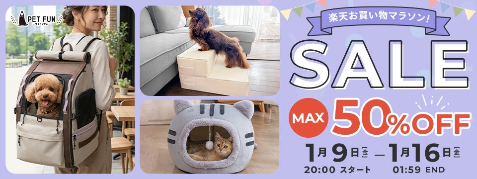 PetFun(ペットファン)楽天市場店では、1月19日(金)まで楽天お買い物マラソンセールを開催。