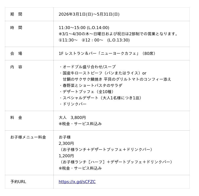 ~NEW YORK CAFE ~ローストビーフランチフェア~ 概要
