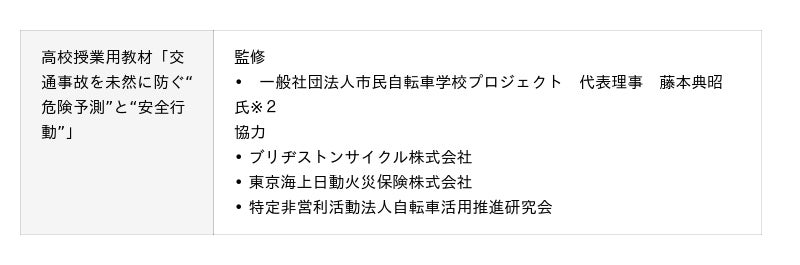 なお、本教材は、群馬県と連携した取り組み「自転車と自動車いっしょにSTOP!-脱・自転車事故件数ワースト1-」の一環として、より多くの高校生が実践的な交通安全学習に触れる機会を確保するために、学校のカリキュラムの中で使用が可能な教材として制作しています。