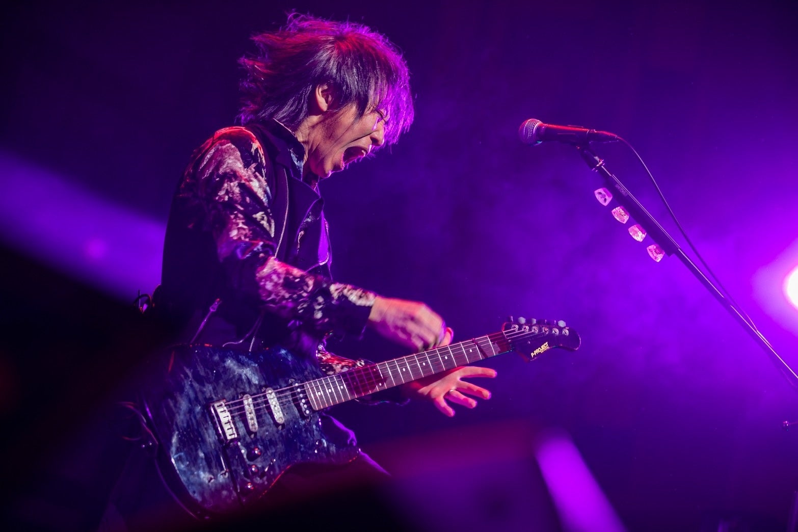 昨年は3月から5月にかけて『QUEST FOR TREASURE LAND』と題した“neo acoustic tour”を全国16カ所で開催、6月には通算23作目のオリジナル・アルバム『WHAT A WONDER WONDERLAND』を発表、ヒューリックホール東京での『PERSONZ 40th Anniversary FINAL ONE NIGHT ONLY DREAM LAND』を挟み、7月から9月にかけて同作の発売記念ツアー『PERSONZ-2025【WHAT A WONDER WONDER LAND TOUR】』を全国16カ所で開催、10月にキャリア初の沖縄公演やビルボードライブ大阪での特別公演を行なうなど、渾身のパフォーマンスを各地で魅せたバンドの2025年集大成となるライブ。開演時間の17時になる頃にはすでに陽は傾き、ステージ後方の窓ガラスの向こうには高層ビルの窓明かりや木々を彩るイルミネーション、そして深紅に染まる東京タワーが黄昏のなか煌々と輝くのが見える。