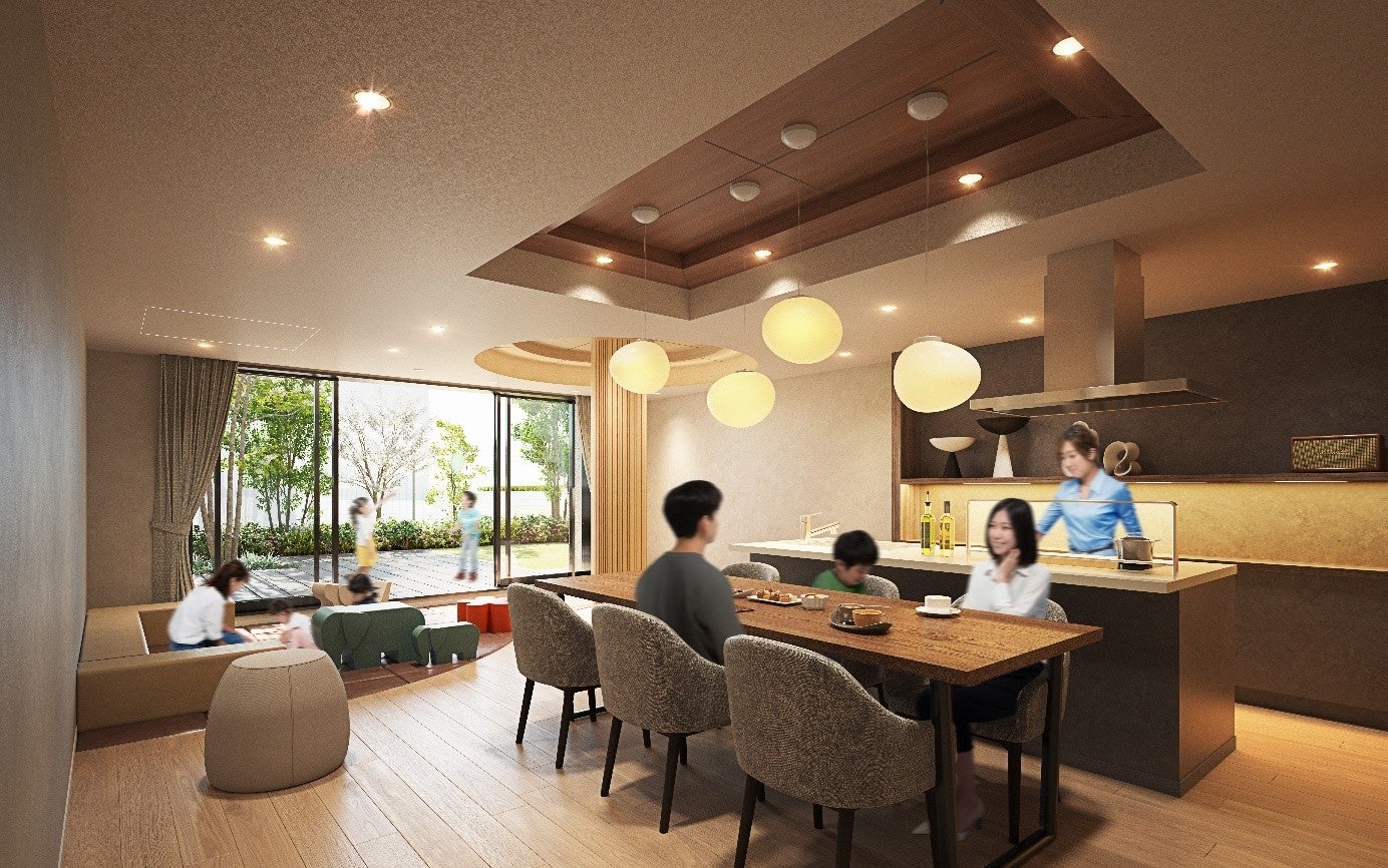 菜園に隣接するドッグランも「大切な家族(ペット)」を通じた交流を生み出し、世代やライフスタイルを超えた緩やかな絆を育みます。また、友人や家族を気軽に招ける開放的な「コミュニティルーム」は、日常の交流をさらに深める大切な場所となります。
