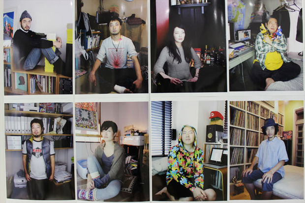 モデルの目が全て「白目」になっている。思わずぎょっとするが、壁一面の白目の人々に見つめられていると不思議な気分になってくる。
