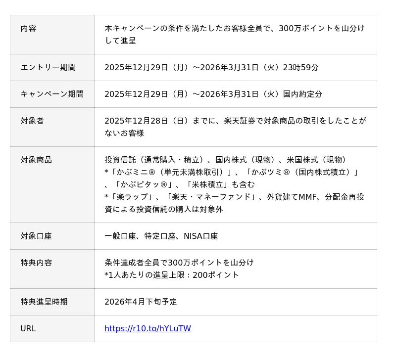 ■「2026年こそ!投資を始めるなら、今がチャンス!はじめてのお取引で300万ポイント山分けキャンペーン」 概要