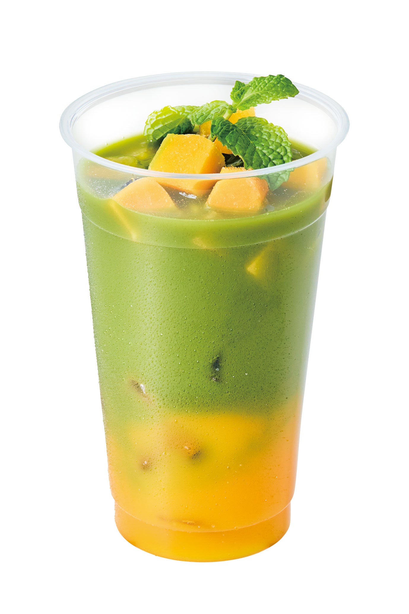 「抹茶×マンゴー」意外な組み合わせのドリンク。和の趣を感じる深緑とトロピカルな黄色が織りなす彩、一口ごとに表情を変える味をお楽しみください。