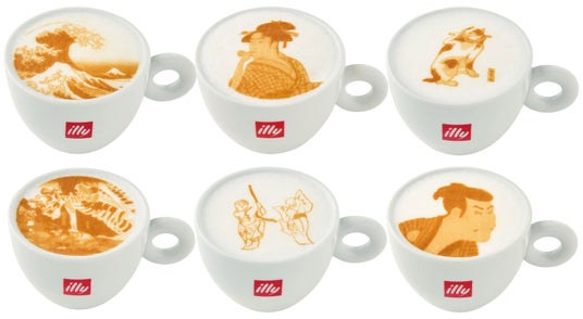 イタリア・イリー社の豆を使用した本格カフェラテ。なめらかな泡の上に浮かび上がる浮世絵は6種類。お好みのデザインをお選びください。