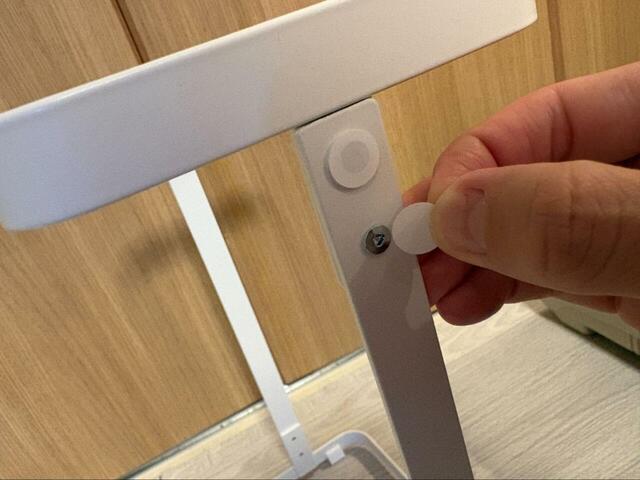 組み立てはとても簡単!付属の六角レンチで支柱とフレームを固定し、ネジ隠しのシールを貼るだけです。特別な工具も不要で組み立てられますよ◎