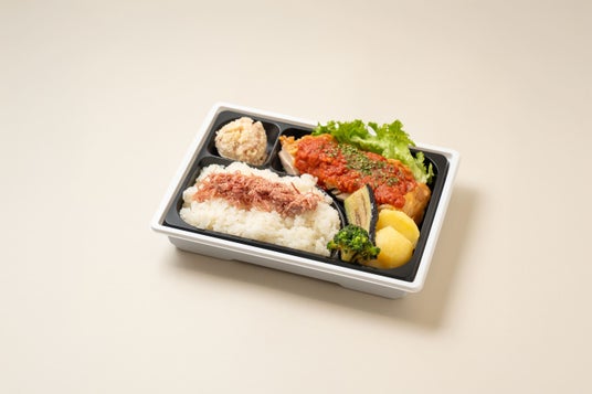 人気の特製トマトソースで仕上げた贅沢なお弁当。