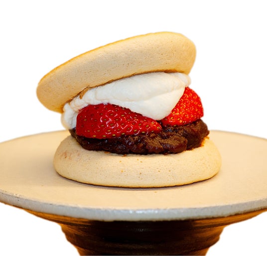 熊本が誇るブランドいちご「ゆうべに」を、甘酒とれんこん粉でふんわりと柔らかく手焼きした「あんさんどら」生地で包みました。濃厚な生クリームと、希少な十勝産小豆の風味を活かした丁寧に炊き上げた優しい甘さのあんこが、見事に調和しています。