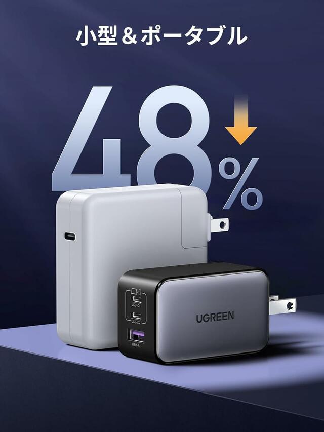 パソコンもスマホも3台まとめて急速充電できる65W出力の急速充電器と高耐久ケーブルのUGREEN製セットが40%ポイント還元に!
