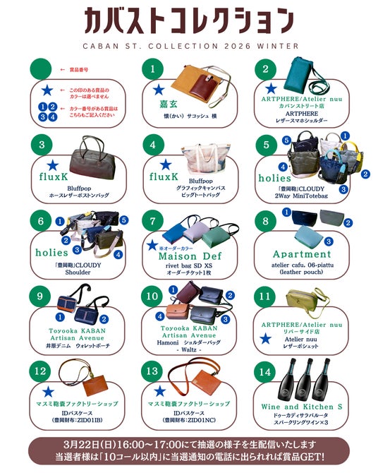 豊岡まちづくり株式会社(兵庫県豊岡市中央町18-10、代表取締役:足立哲宏)および、同社と周辺店舗によるイベント協議会「豊岡まちなかイベント企画」は、国内有数の鞄産地である兵庫県豊岡市の中心部の通称「カバンストリート」周辺の活性化をめざしたスタンプラリーイベント「カバストコレクション」を2026年1月10日から開催します。詳細は、豊岡まちづくり株式会社が運営する施設「Toyooka KABAN Artisan Avenue ホームページ」にてご覧いただけます。