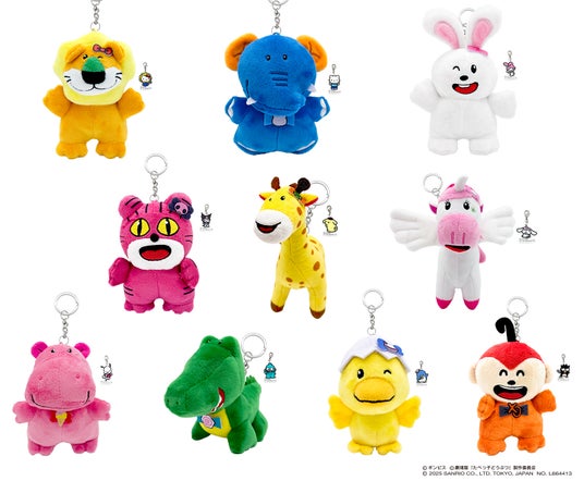 さらに、「たべっ子どうぶつ THE MOVIE」とサンリオキャラクターズのコラボイラストグッズも、ハーモニーランドに登場しました。先行発売の「ぬいぐるみマスコット(全10種)」をはじめ、コラボイラストをあしらった「トレーディングラバーキーホルダー(全10種)」、「メモ帳(全10種)」、「サガラ刺繍ポーチ」、 「クリアマルチケース(全10種)」、どうぶつさんたちの姿になったサンリオキャラクターが愛らしい「着ぐるみマスコット」など、幅広いアイテムが揃います。お気に入りのひとつに出会える、うれしいグッズ展開です。