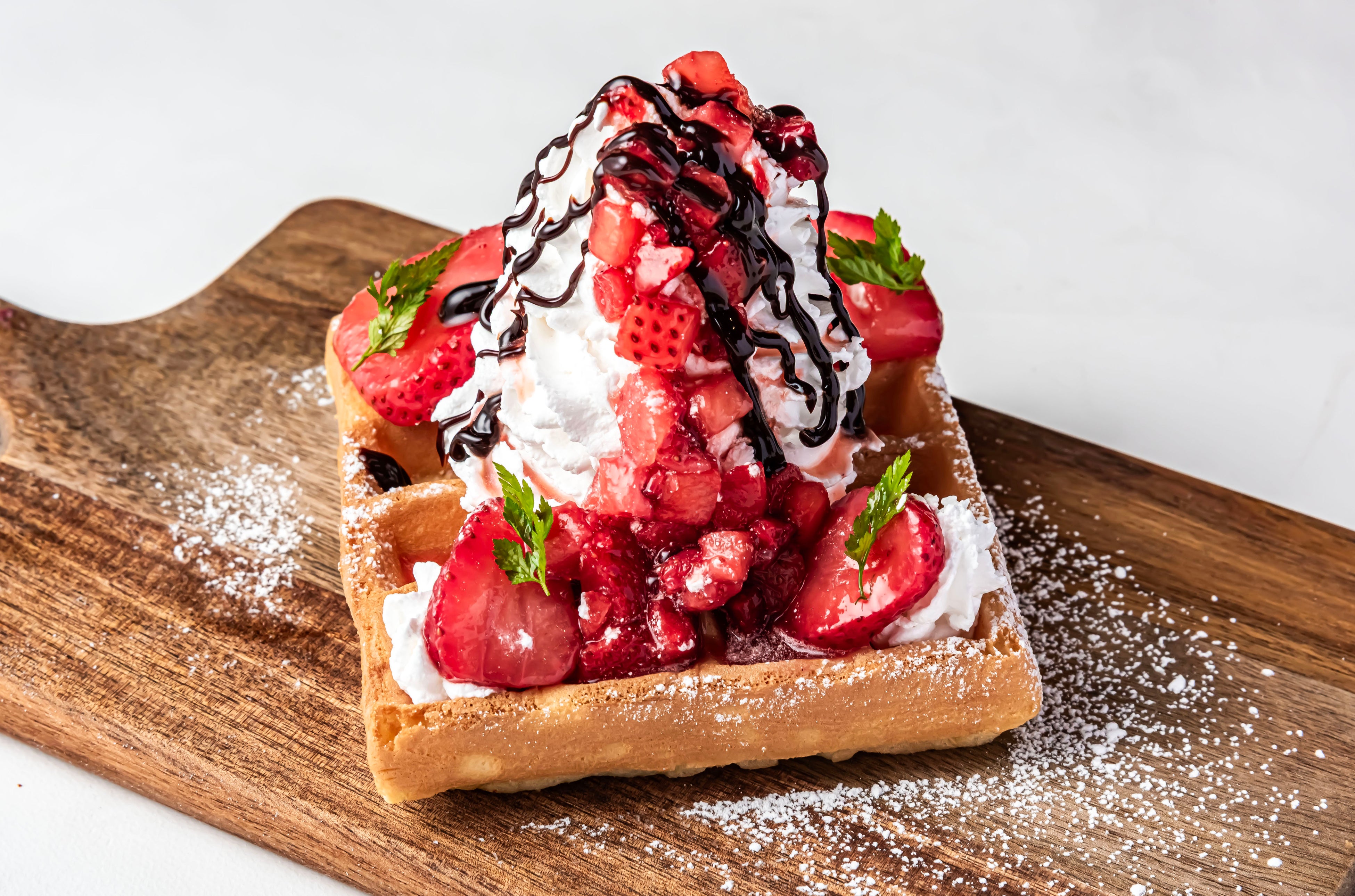 ●ベルギーワッフル(ストロベリー )バター香るワッフル生地といちごのみずみずしい甘みが絶妙に重なり、見た目も味わいも華やかな一品です。
