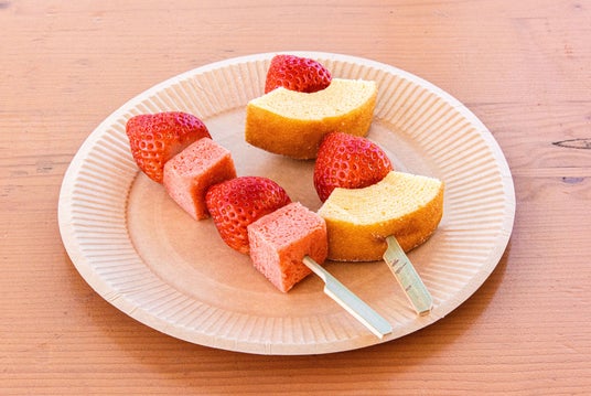 真っ赤に熟したいちごと、丁寧に焼き上げたバウムクーヘンを交互に串に刺したスイーツです。