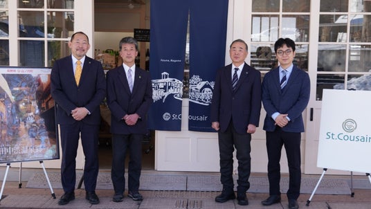 店舗オープンに先立ち、山ノ内町・サンクゼール合同記者発表を行いました。記者発表で平澤山ノ内町長は、「湯田中区の賑わい創出に加え、お土産や食文化などの観光体験をより価値あるものにするため、サンクゼールとの連携で地域を盛り上げていきたい。」、またサンクゼール久世社長は「単なる出店ではなく、地域と企業が未来をつくる共創の第一歩。町のポテンシャルを生かして課題解決に貢献したい。」と語りました。